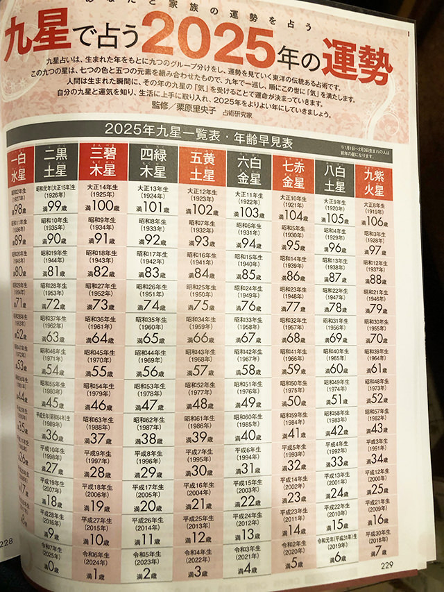 巻末には、毎年好評の占い「九星で占う2025年の運勢」を掲載。